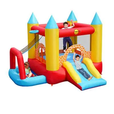 4in1 è un gonfiabile multi-attività adatto ai più piccini, un vero mini parco giochi! Ha il salterello, lo scivolino e la vaschetta delle palline, oltre al canestro ed al tiro al bersaglio.