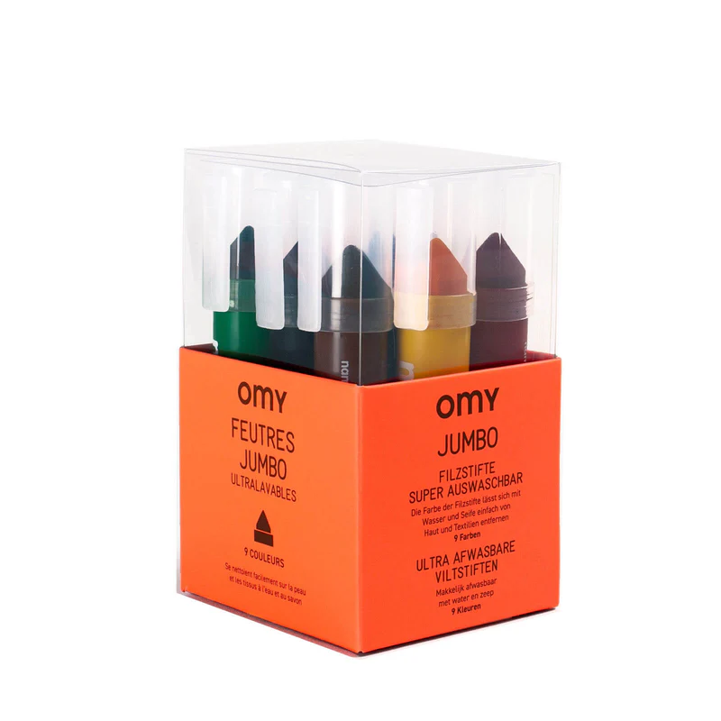 Omy Preparati per un’esplosione di colori con i nostri pennarelli Jumbo! Perché sono fantastici? Taglia XXL: i nostri pennarelli sono appositamente progettati per mani piccole . Facili da maneggiare, anche per i più piccoli, permettono di colorare, disegnare e creare capolavori in tutta semplicità! Linea gigante: dotati di una punta conica gigante, questi pennarelli offrono uno spessore del tratto che va da 2 a 12 mm. Abbastanza per creare grandi superfici colorate e dare libero sfogo alla tua fantasia! Magic Ink: il nostro inchiostro a base d’acqua ultralavabile garantisce una facile pulizia. Non macchia né le mani né i vestiti.…