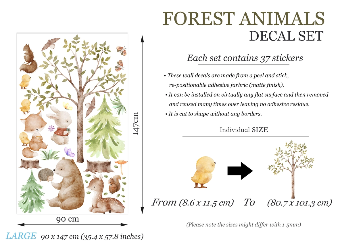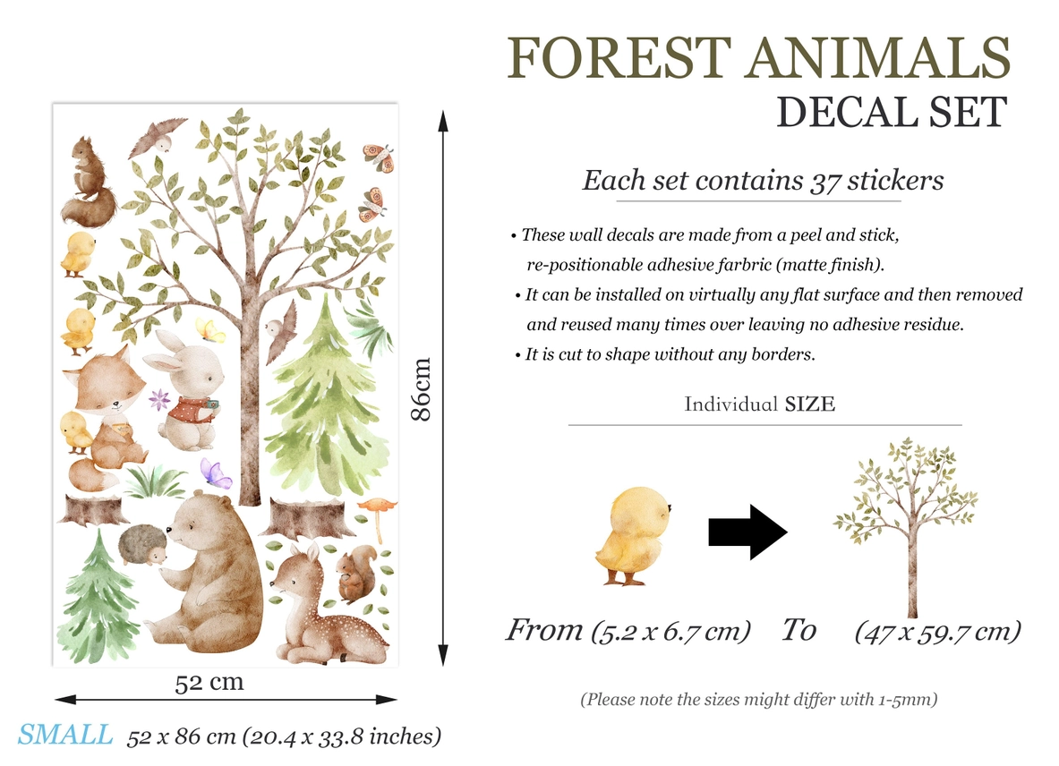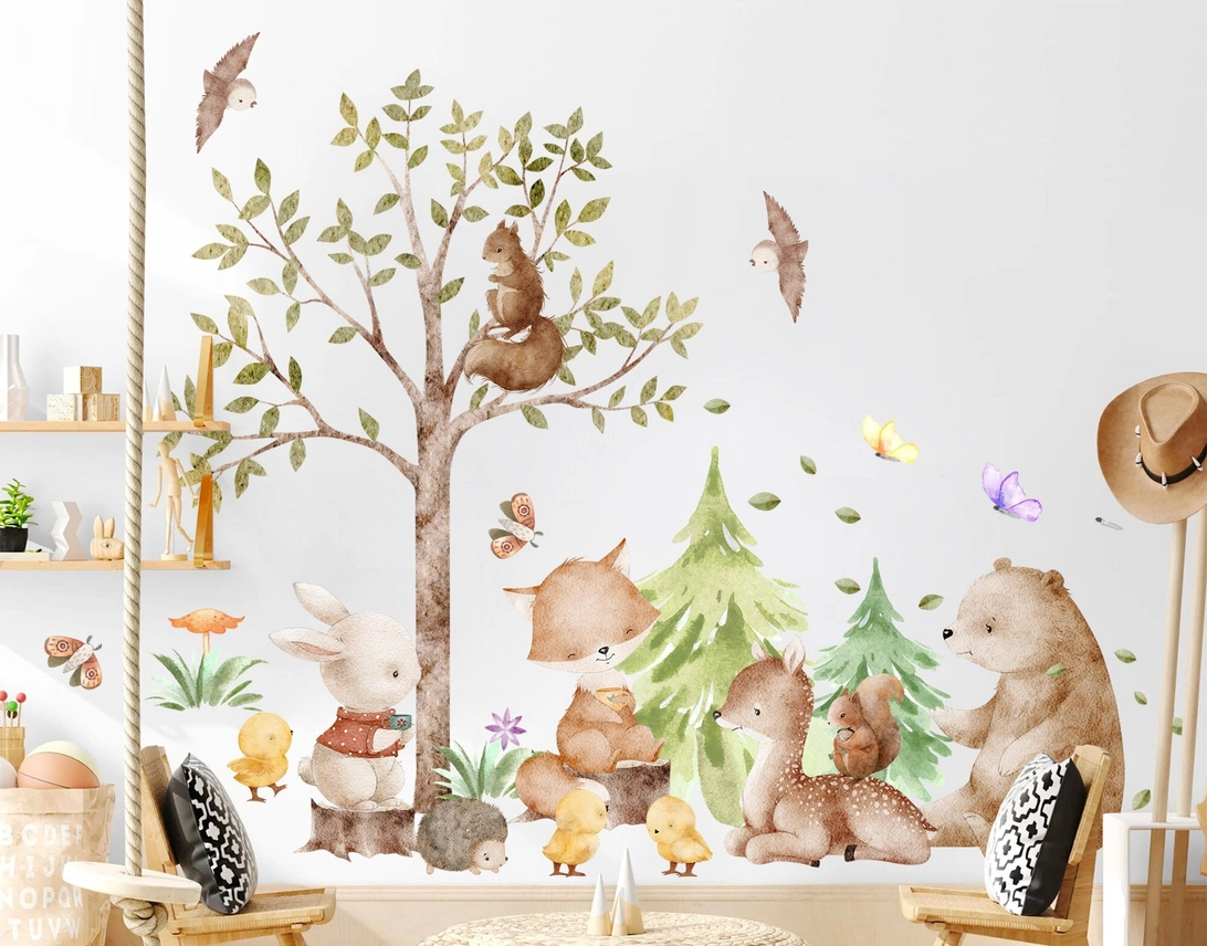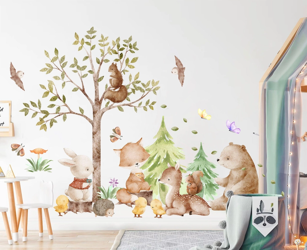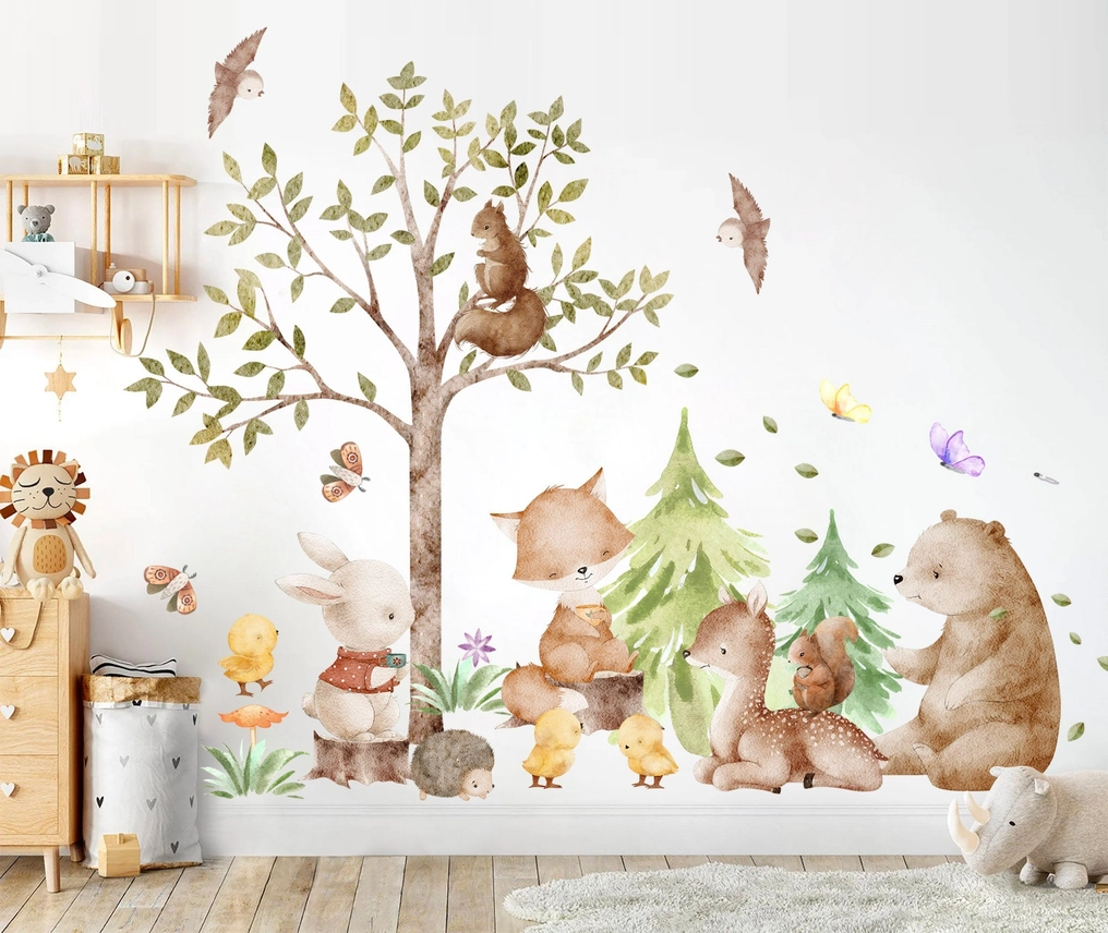 Adesivo da parete con motivo «Forest Friends», motivo: coniglietto, scoiattolo, volpe, cervo, orso, pulcino
