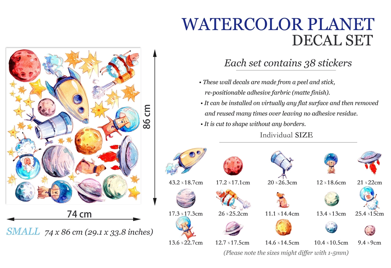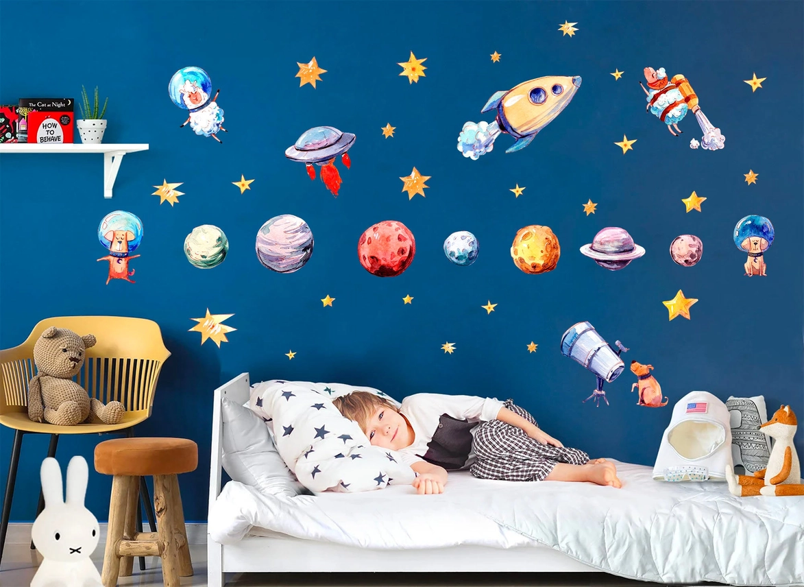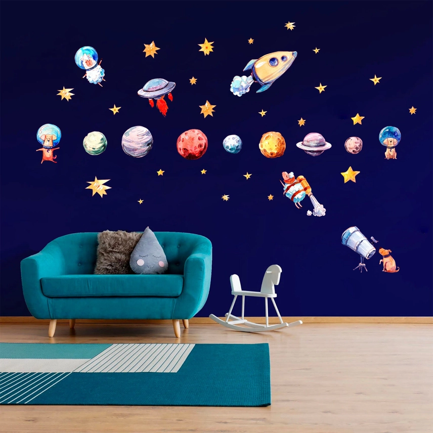 Adesivo da parete Galactic Adventures: Solar System & Cosmic Critters