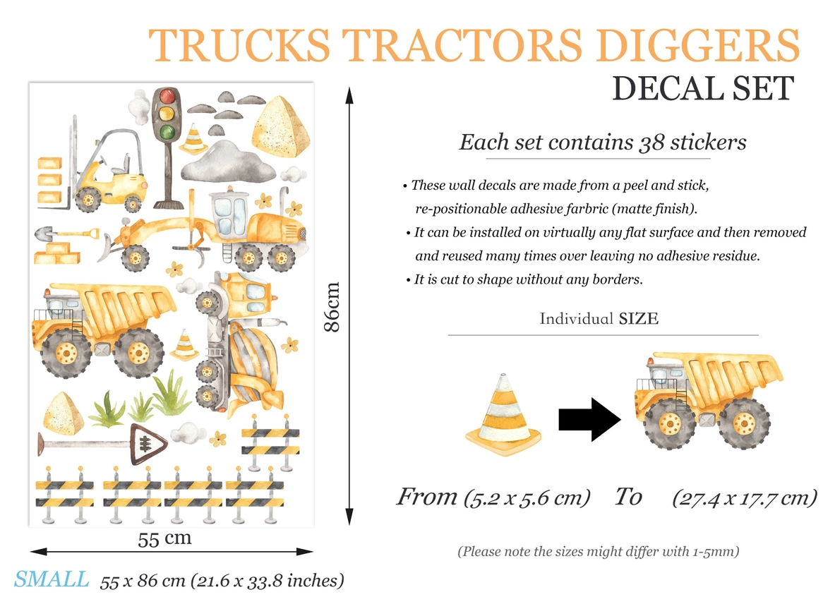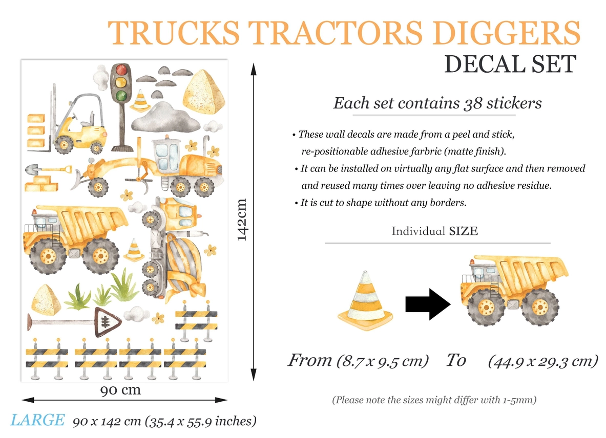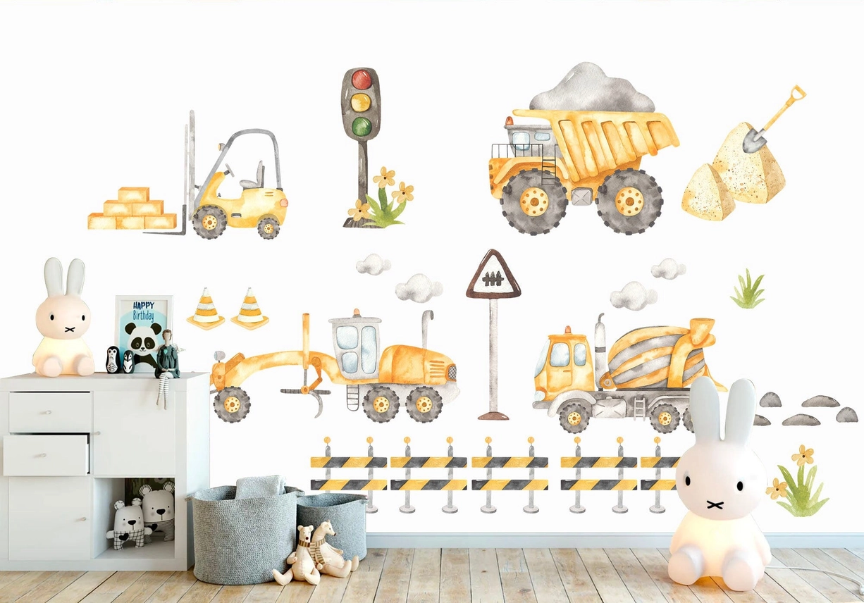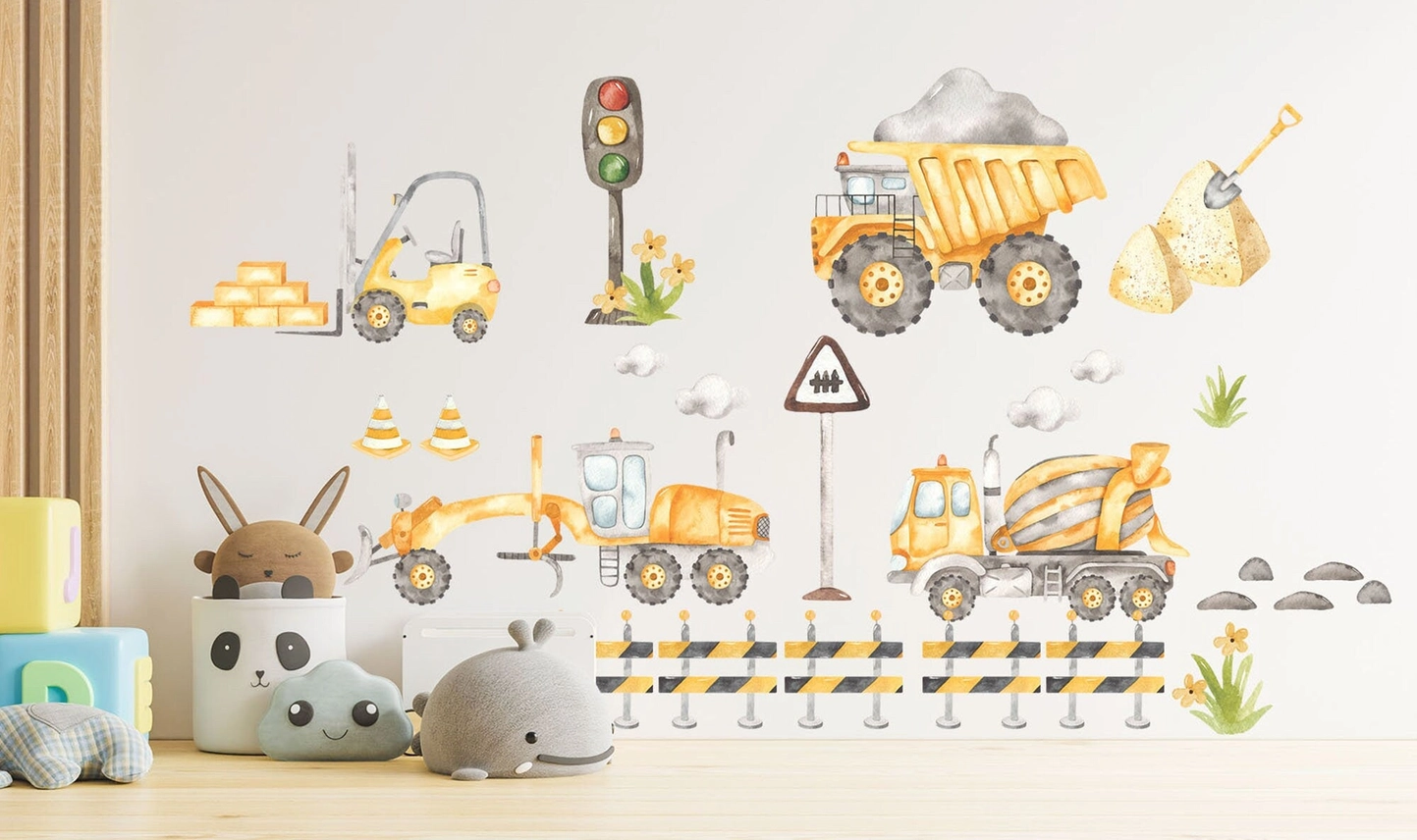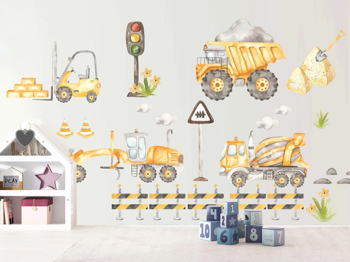 Adesivo murale rimovibile per camion, bulldozer, trattori escavatori dietro i blocchi stradali, regalo per la camera dei ragazzi