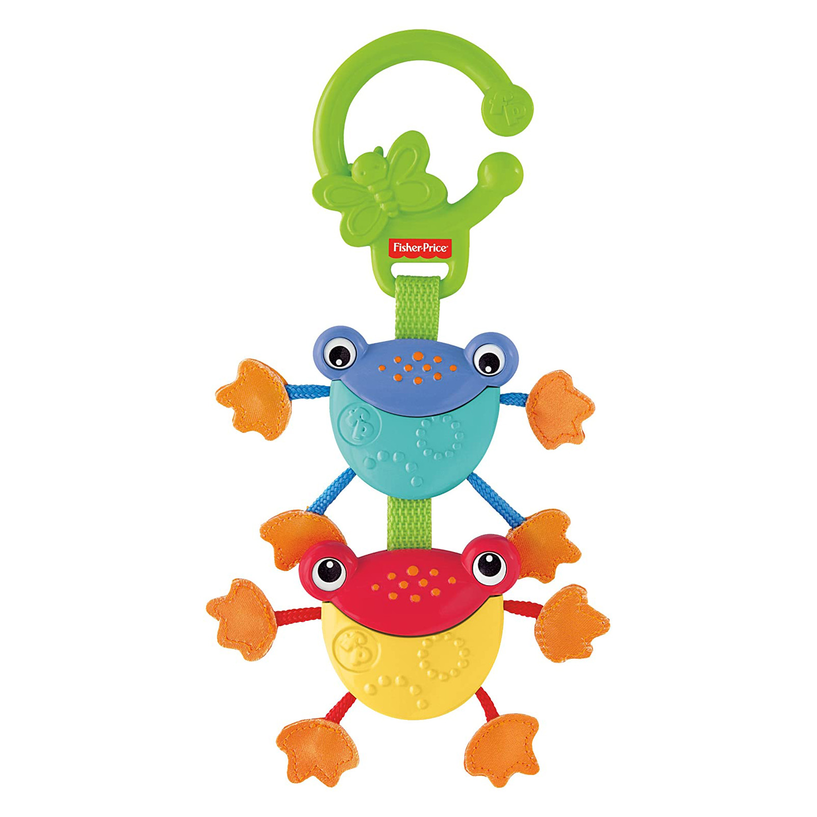 Un giocoso sonaglino con due simpatici ranocchietti, ognuno dei quali ha corpo in plastica e morbide zampine perfette: i materiali diversi forniscono diverse sensazioni tattili al bambino stimolando lo sviluppo sensoriale. I due ranocchietti sono dotati di un gancio ad anello, che permette di collegarli facilmente alla culla o al passeggino.