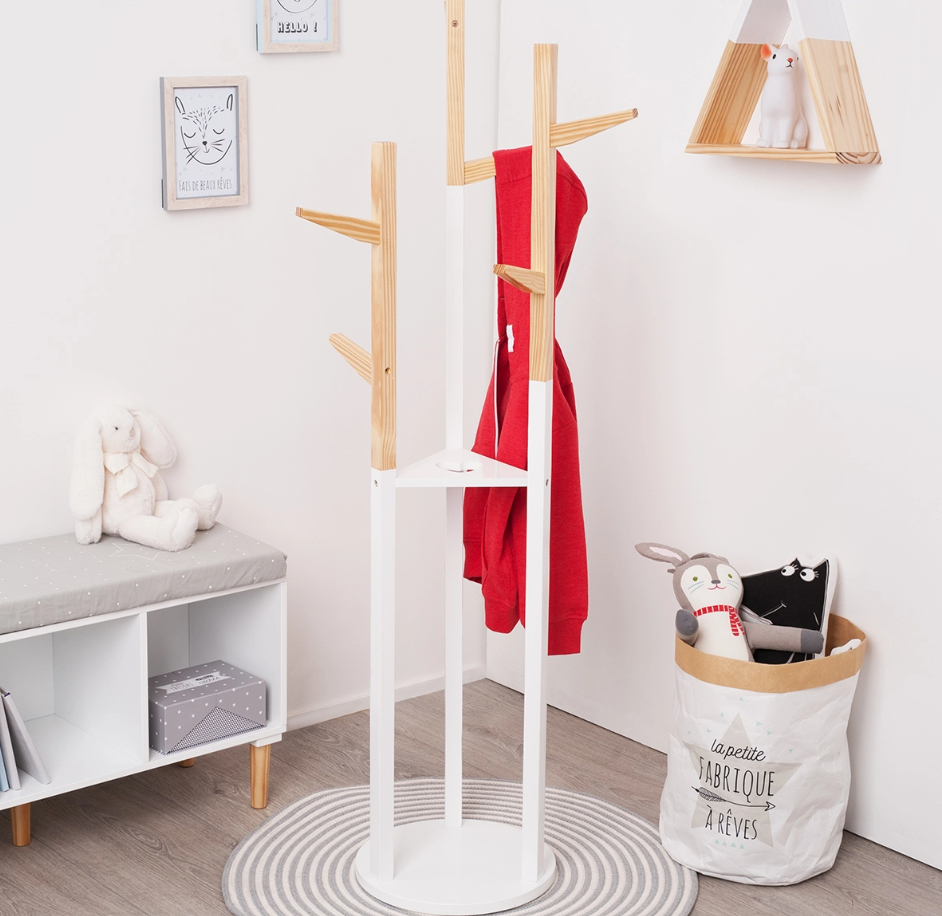 APPENDIABITI GIN Vuoi una decorazione moderna e da sogno per la cameretta del tuo bambino? Questo appendiabiti in legno per bambini delizierà grandi e piccini. Un appendiabiti utile e decorativo Ideato per appendere abiti e cappotti, questo appendiabiti è caratterizzato da una solida struttura in legno e pino naturale. Dotato di cinque rami che imitano la forma di un albero, permette di decorare la stanza rimanendo utile nella vita di tutti i giorni. Ci piacciono le finiture pulite come la struttura bicolore e la piccola pettorina con un taglio a cuore. Un appendiabiti alla moda Questo appendiabiti in legno bianco…