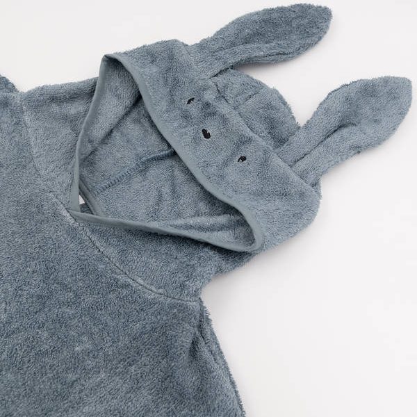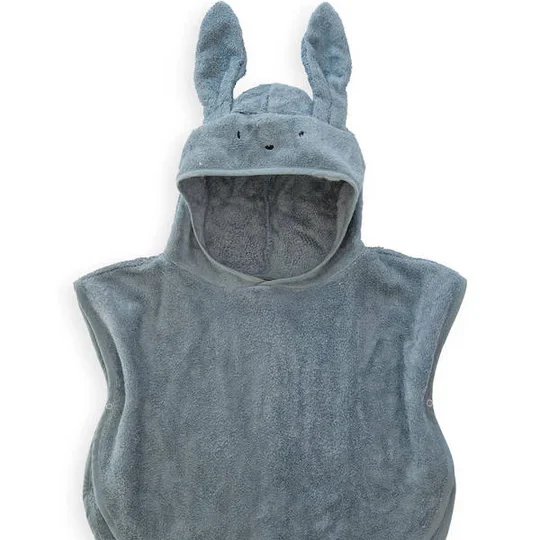 Avvolgi il tuo bambino in un abbraccio di pura morbidezza con il Poncho Bamboom Coniglietto Blu!
