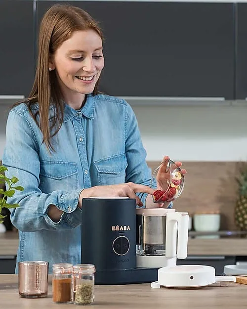 BEABA’ ROBOT DA CUCINA 4IN1 : cuoce a vapore, mescola, riscalda e scongela per servire una vasta gamma di cibi e piccoli piatti deliziosi.