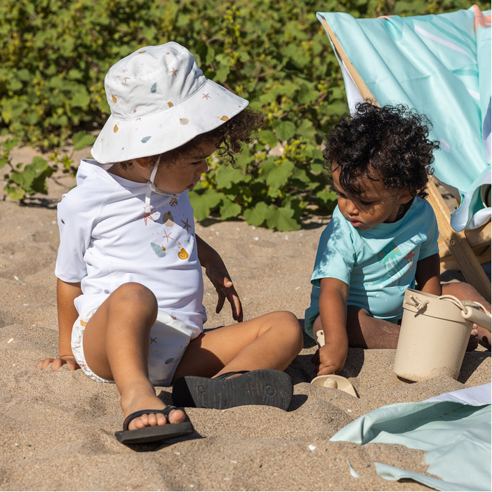 Questo cappellino per il sole reversibile proteggerà la testa del bambino durante le attività all’aperto.