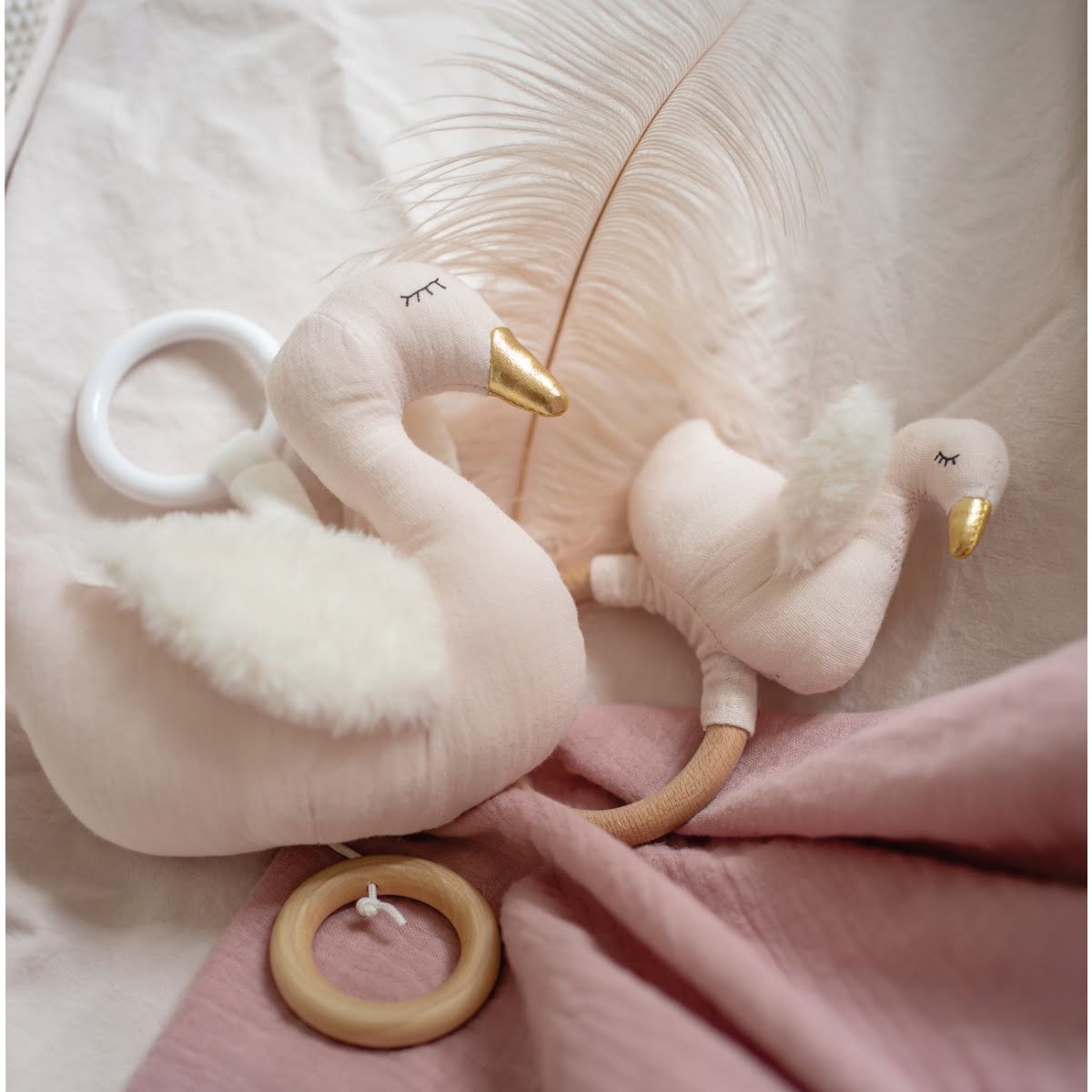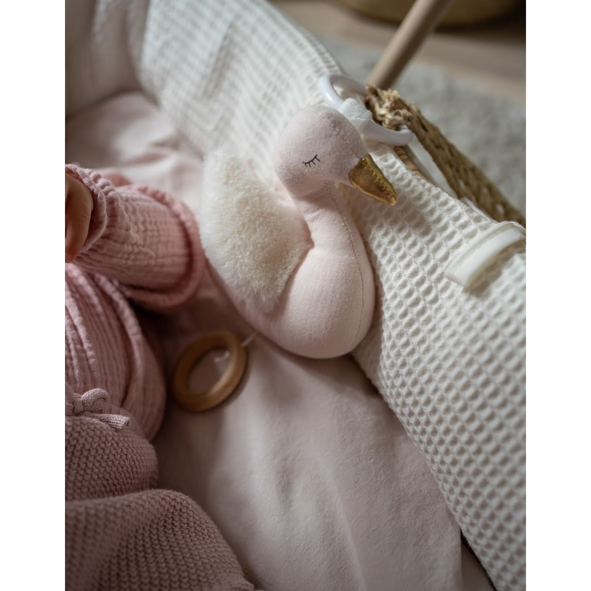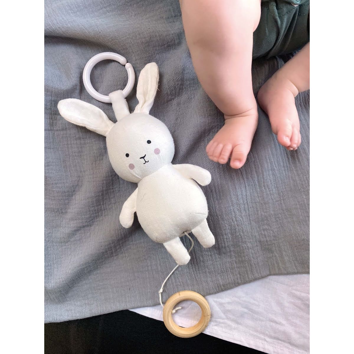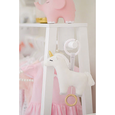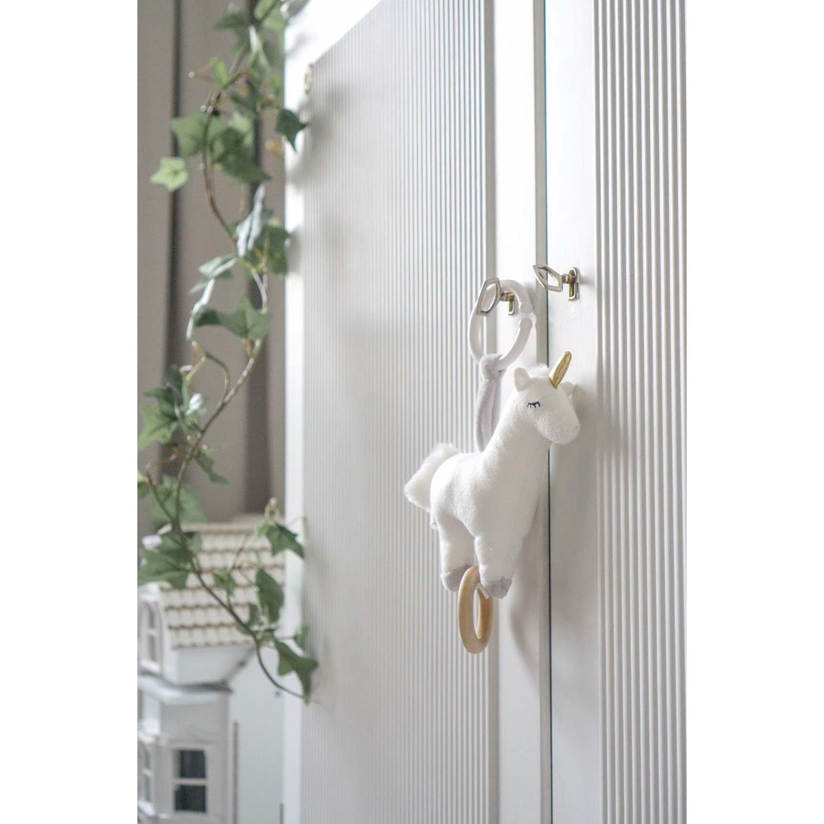 Simpatico carillon a forma di coniglio, unicorno, orso e cigno da appendere nella carrozzina. Lascia che il tuo bambino si addormenti con una melodia rilassante. Il carillon si fissa facilmente con l’aiuto di un anello associato e funziona quasi ovunque. Realizzato con il tessuto più morbido, il carillon è ottimo anche come regalo di battesimo per il neonato. Realizzato in mussola di cotone intrecciato e imbottitura in fibra di poliestere. Colore: Bianco Età: Da 0 anni Materiale: Cotone, poliestere, plastica, legno Confezione: 21 x 7 x 21 cm Misurare: Lunghezza 21 cm EAN: 7332599001360