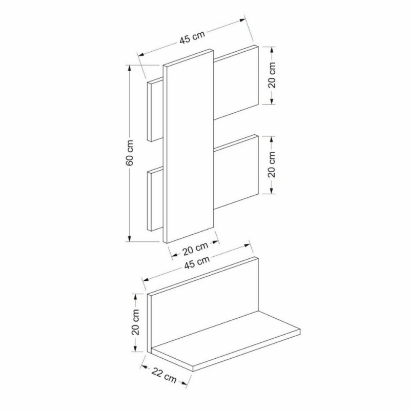 Composizione mensole da parete antracite noce Belita Caratteristiche: Truciolare alta qualità. Rivestimento in melaminico. Colore antracite noce. Composta da: 2 pannelli noce. 1 antracite. Mensola antracite. Misure 45x22x80 h cm. (vedi dettagli in foto). Prodotto fornito smontato.