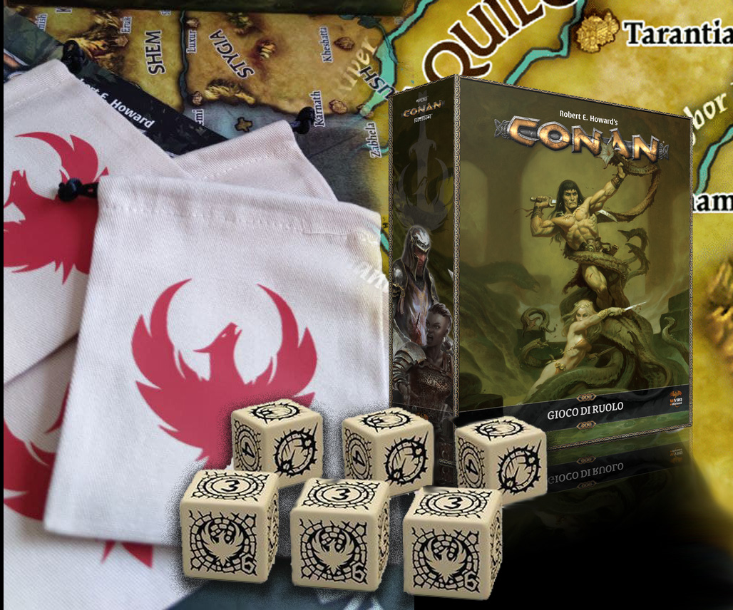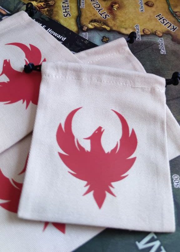 CONAN GDR: SET DI 6d6 Un set griffato di 6 dadi da 6 con la fenice che indica i successi, creato appositamente per Robert E. Howard Conan: Avventure in un’era al di là di ogni immaginazione. In copie limitatissime, esclusivo per il gdr di Conan! CONAN GDR: BUSTINE PORTADADI Create solo per Wyrd Edizioni, le bustine con l’iconica fenice di Re Conan sono disponibili solo su questo shop. Quantità limitate.