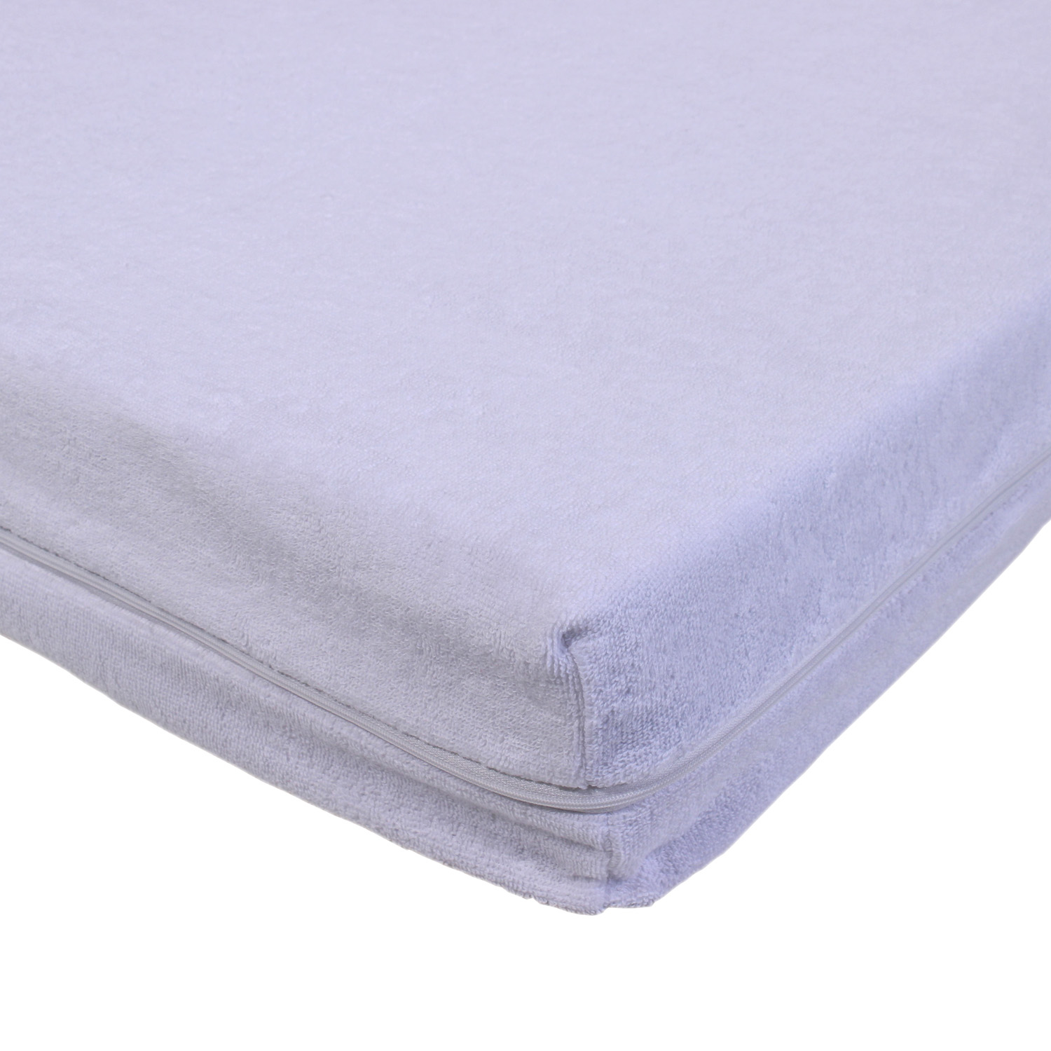 Coprimaterasso realizzato in spugna di cotone 100% adattabile a tutti i materassi da lettino. Resistente e morbido, assicura igiene e freschezza al bambino. Ricopre completamente il materasso ed è dotato di una pratica chiusura con cerniera su tre lati. Lavabile in lavatrice.