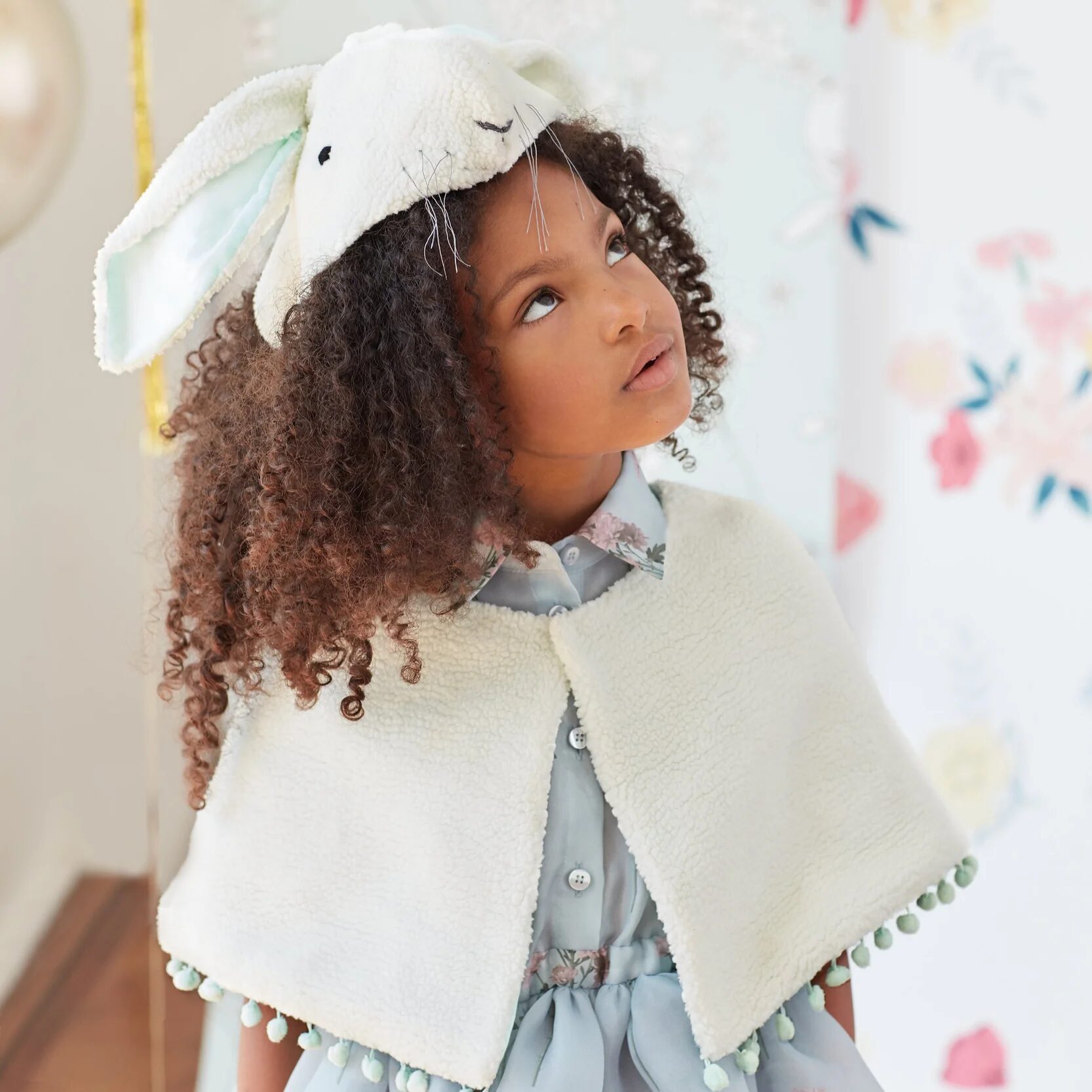 Presenta un morbido mantello e un copricapo, per trasformare istantaneamente i piccoli in teneri coniglietti