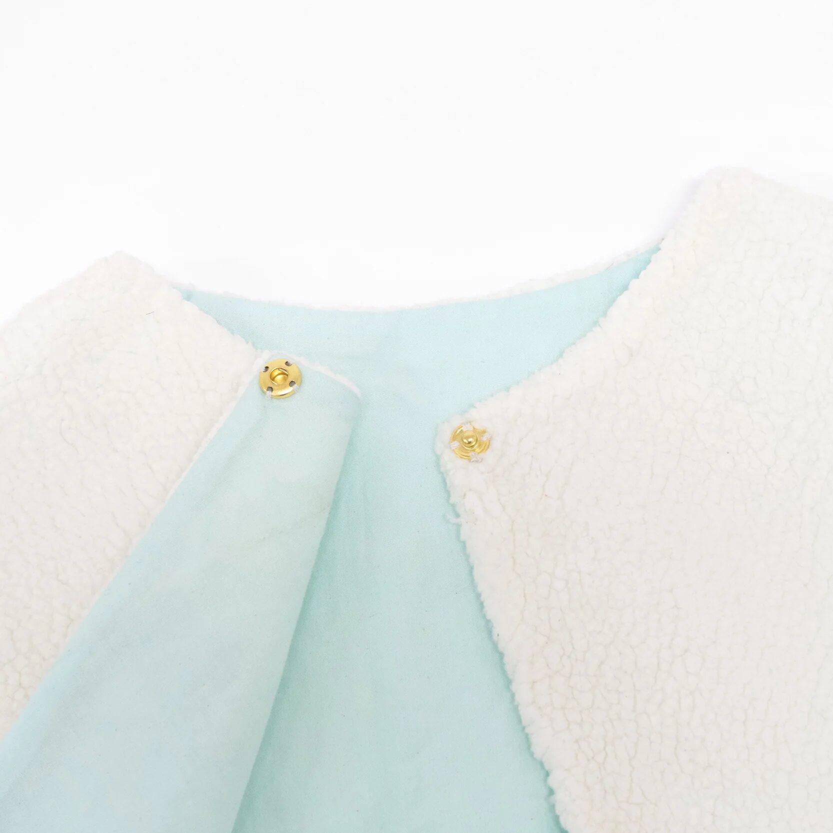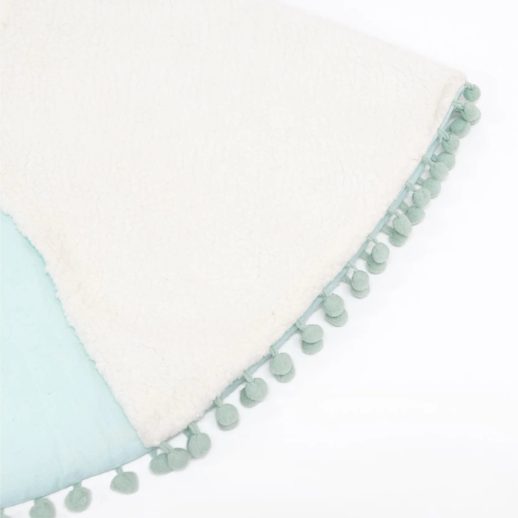 Il mantello foderato ha un bordo con pompon color menta