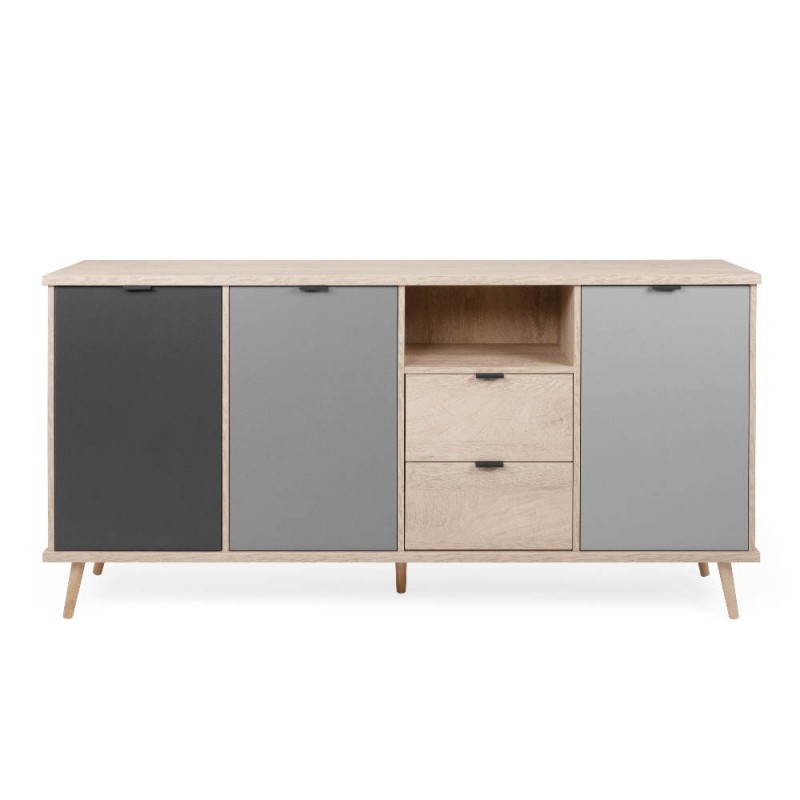 Credenza rovere antracite grigio 3 ante 2 cassetti 180x40x88,3 Epik 52 Generosa credenza, moderna e versatile. Adatta a tutti gli ambienti grazie ai suoi colori neutri facilmente abbinabili. Infatti le finiture delle ante sono grigio chiaro, grigio scuro e antracite, mentre la struttura e i cassetti sono rovere. Robusta e capiente, la credenza è dotata di 3 ante con ripiani 2 cassetti e un vano a giorno. Caratteristiche: Materiale nobilitato 3 ante 2 cassetti 1 vano a giorno Piedini in stile scandinavo Dimensioni: 180x40x88,5H