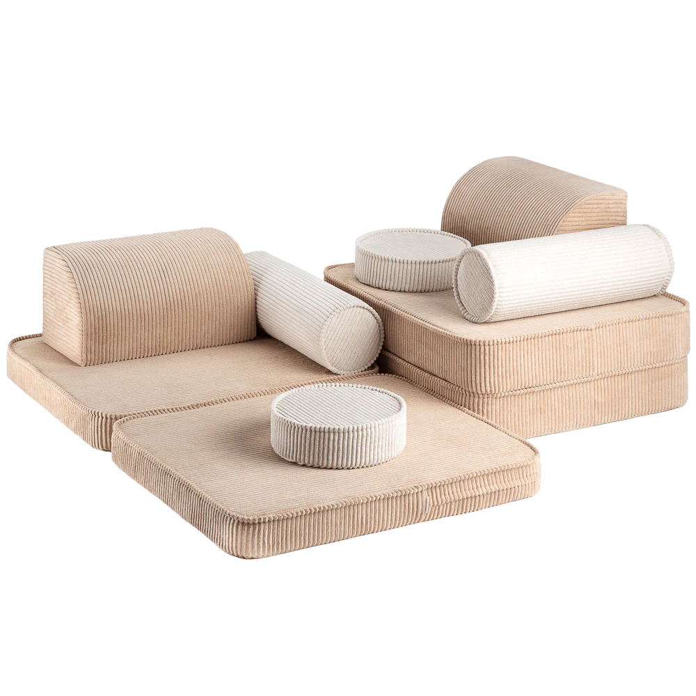 Ti presentiamo Settee Preparati per un compagno dinamico che diventerà il migliore amico del tuo piccolo, accompagnandolo ogni giorno. Altamente versatile, appositamente progettato per adattarsi a tutti i tipi di case familiari, il divano creerà un ambiente sicuro per il gioco, il riposo, il pisolino o qualunque cosa faccia il piccolo proprietario del divano. Il divano è disponibile in 9 parti: due cuscini del sedile, un grande cuscino del sedile, due cuscini triangolari come schienali, due cuscini a rullo come braccioli e due cuscini rotondi, fornendo una combinazione perfetta con un potenziale illimitato per il gioco fantasioso e il relax.…