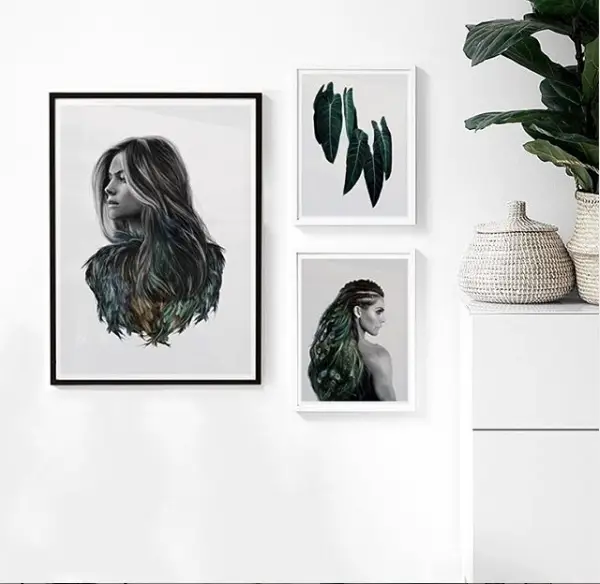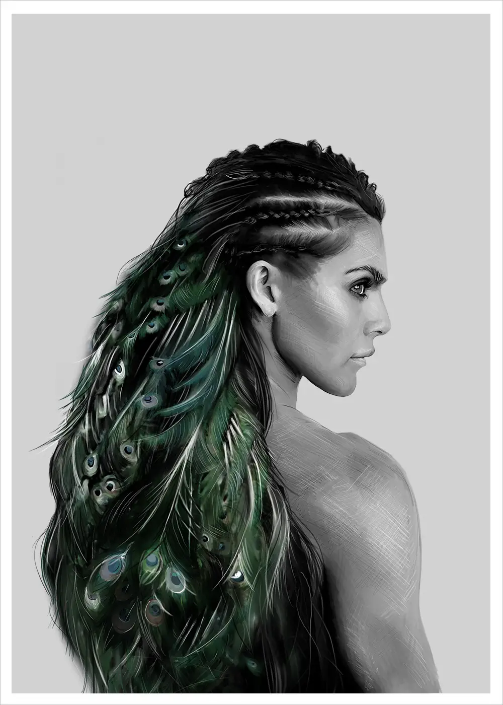 Questo poster trasuda forza e potere femminile! Notate i dettagli raffinati con le piume di pavone tra i capelli. Questo poster è basato sulla famosa atleta norvegese Jørgine (Funkygine).