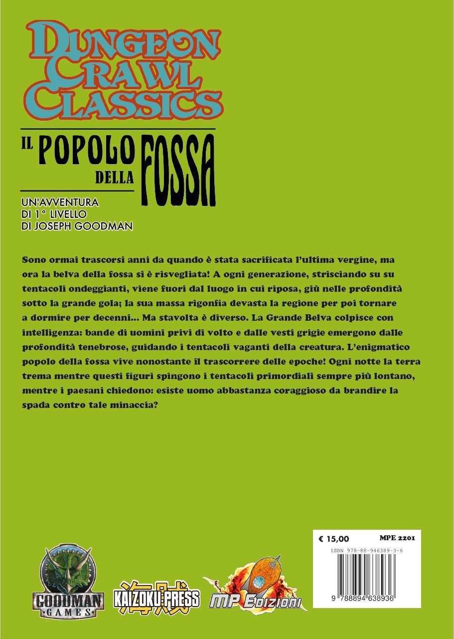 IL POPOLO DELLA FOSSA Avventura per 8-10 personaggi di 1° Livello per Dungeon Crawl Classics, il GdR Old School Tipo prodotto: Avventura Formato: A4, 34 pagine B/N. Prezzo: 15 Euro Lingua: italiano ISBN: 9788882925895 Editore: Kaizoku Press