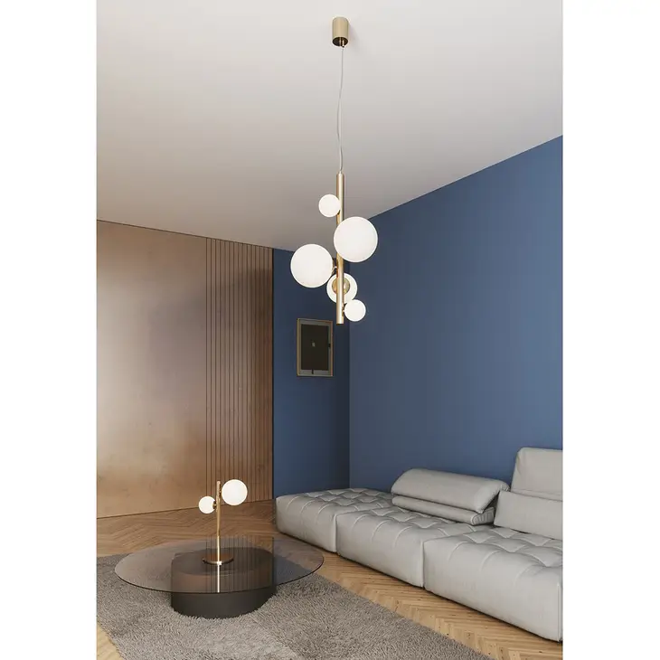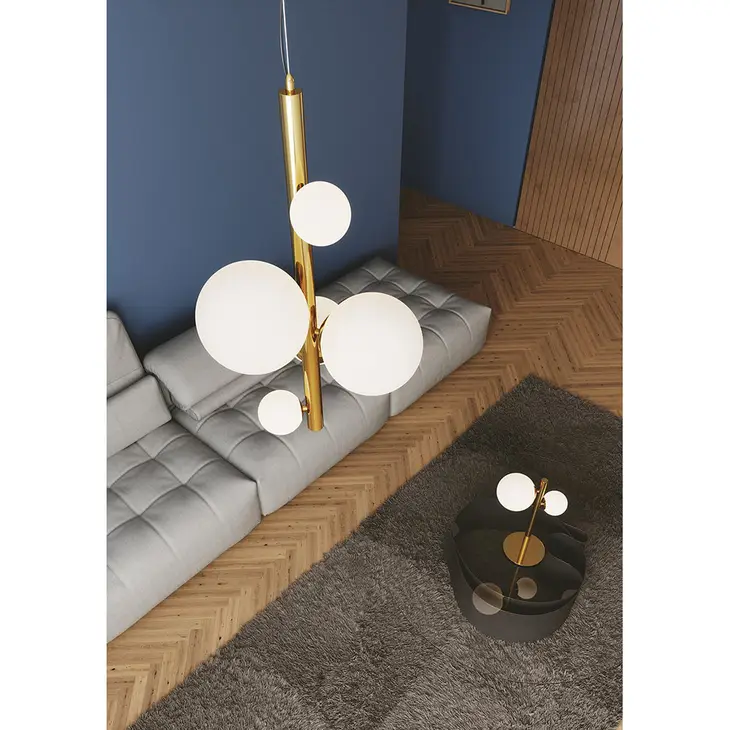 Lampadario sospeso – Hera in metallo oro con diffusori in vetro
