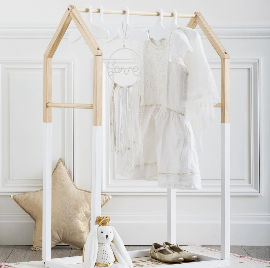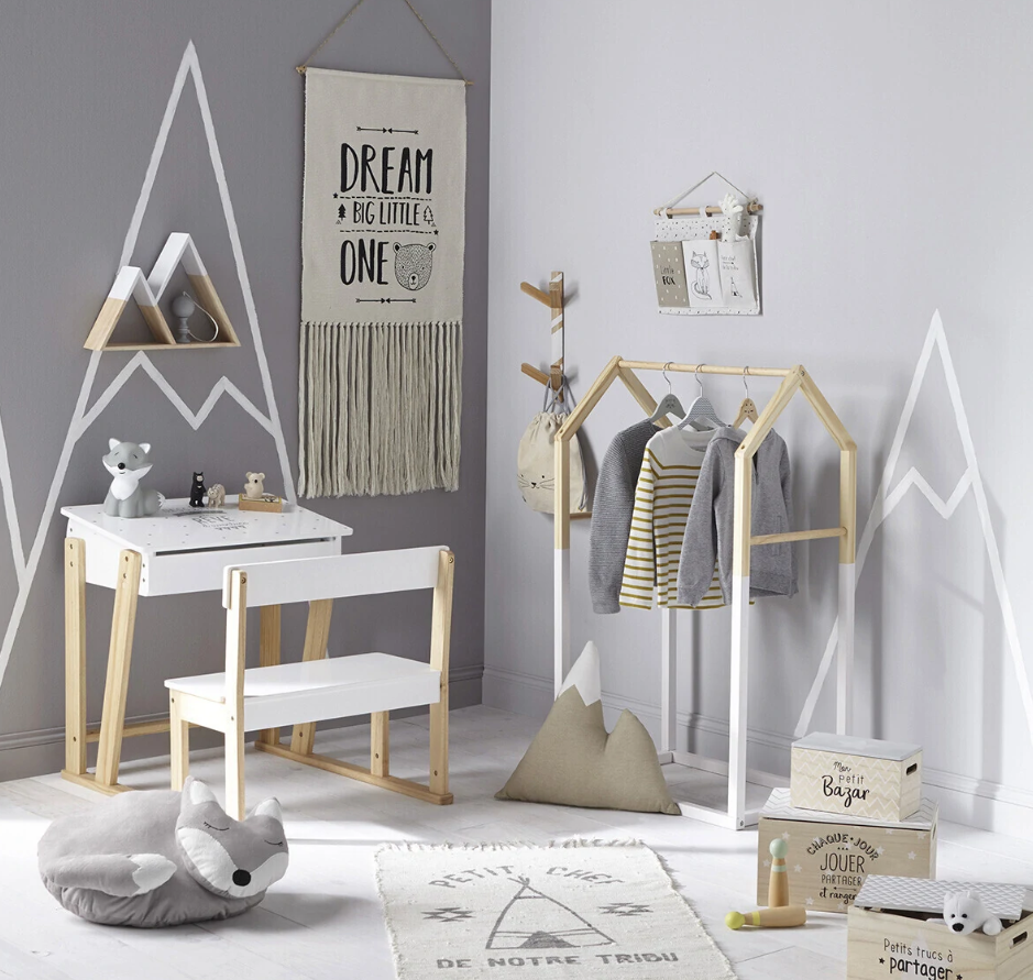Aggiungi spazio extra per i vestiti del tuo bambino con questo appendiabiti Atmosphera for kids “House”. Un elemento di design Grazie alle sue linee grafiche e pulite, questo guardaroba si adatta facilmente a tutti gli stili di decorazione. La sua parte superiore a forma di tetto che evoca una piccola casa è tutto il suo fascino. MOBILE CASA DI PINO Diversi moduli di stoccaggio Questo rack “House” enfatizza la praticità dotandosi di tre aste. Offre quindi uno spazio generoso per appendere più grucce contemporaneamente. Il tuo bambino può appendere i vestiti che non vuole stropicciati: vestiti, costumi, ecc. Dimensioni: L.…