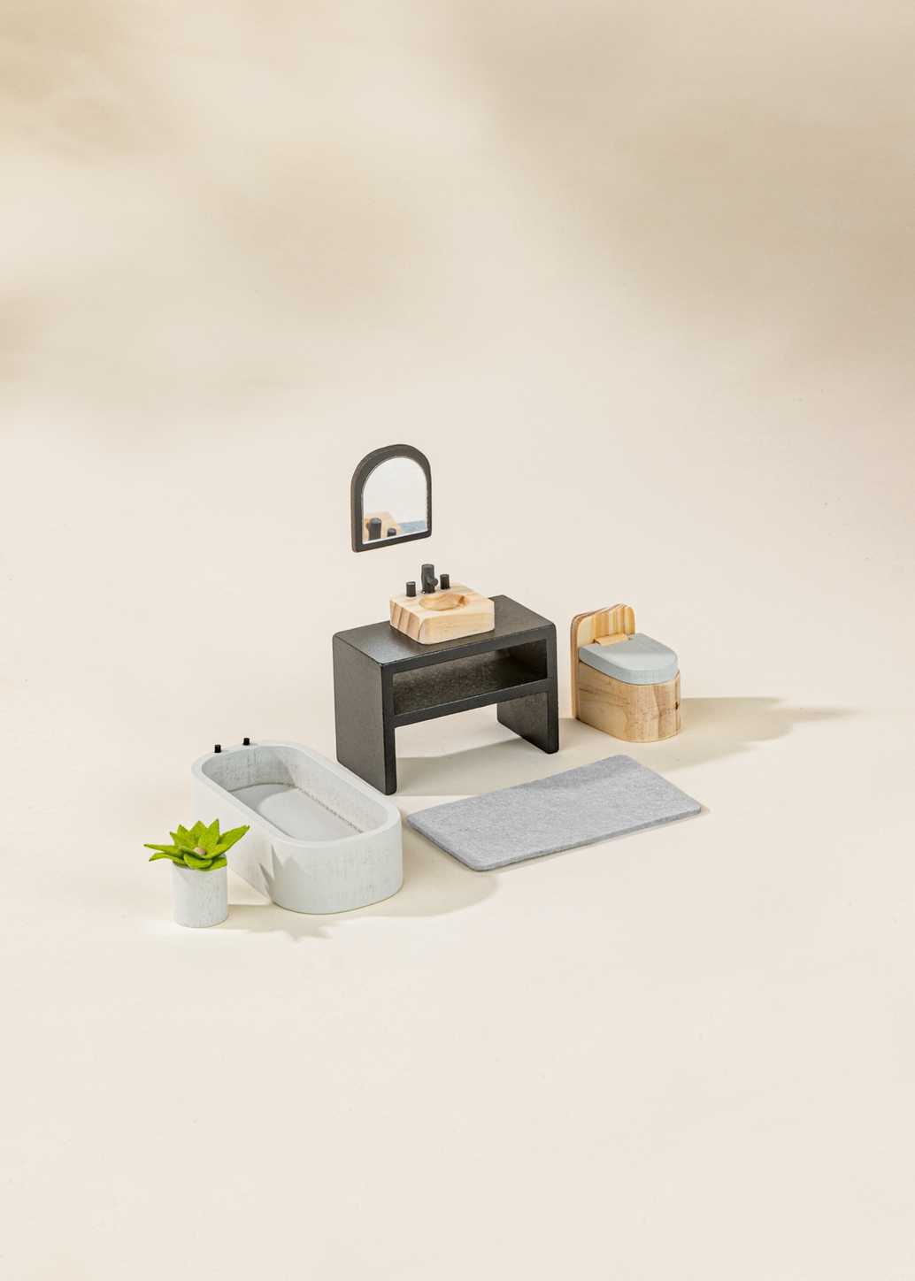 Questo set di mobili e accessori Doll House mira a creare uno spazio accogliente e caldo. Ogni oggetto permette al bambino di sistemare lo spazio dando libero sfogo alla propria immaginazione. Le avventure più incredibili devono ancora arrivare! Il set include: 1 mobile lavabo 1 toilette 1 vasca 1 specchio 1 tappeto 1 pianta Coco Village Codice: 628069860665 CARATTERISTICHE Ideale per bambini dai 6 anni in su Realizzato in legno massello Design esclusivo Certificato ASTM/SOR/CE. Questo prodotto soddisfa tutti gli standard attuali per i componenti chimici e la sicurezza negli oggetti destinati all’uso da parte dei bambini Materiali di alta qualità
