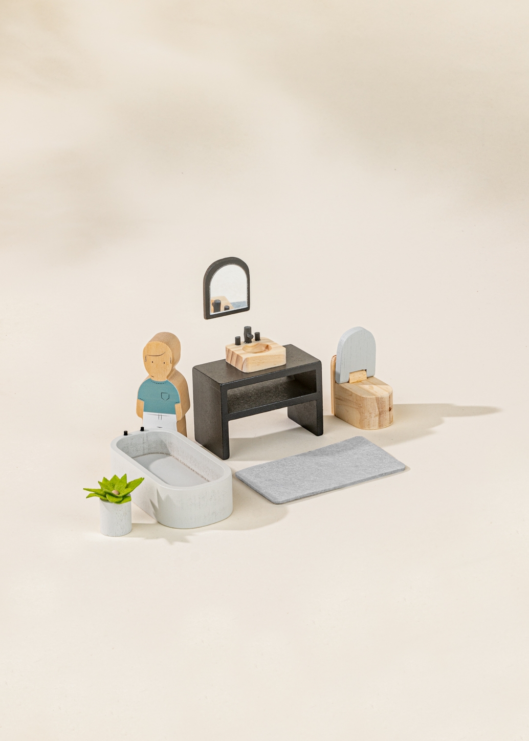 Mobili e accessori da bagno in legno per la casa delle bambole (6 pezzi)
