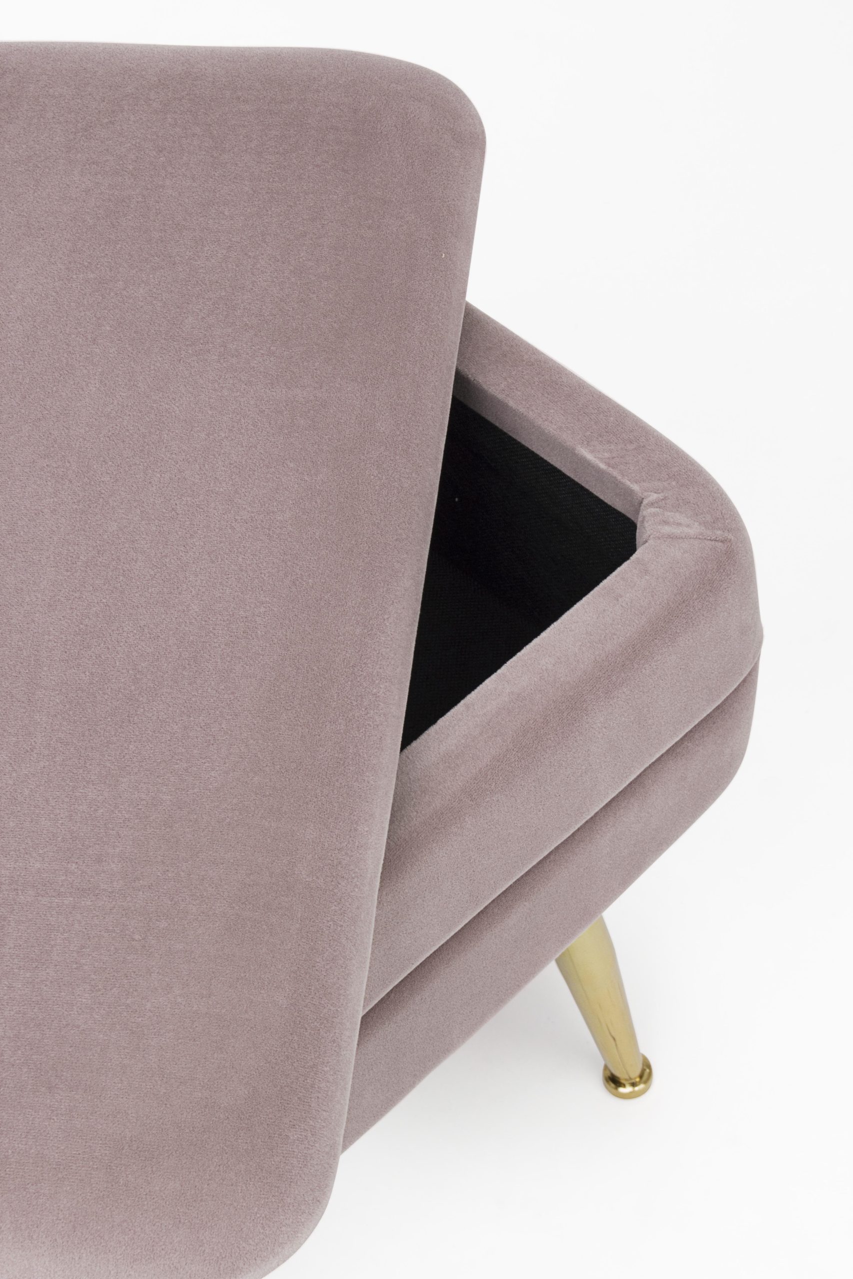 DETTAGLI Struttura in mdf e compensato. gambe in acciaio cromatatura dorata. rivestimento in poliestere effetto velluto. densita’ imbottitura 30kg/m3. gambe da assemblare. MISURE 50a – 34.5b – 42h