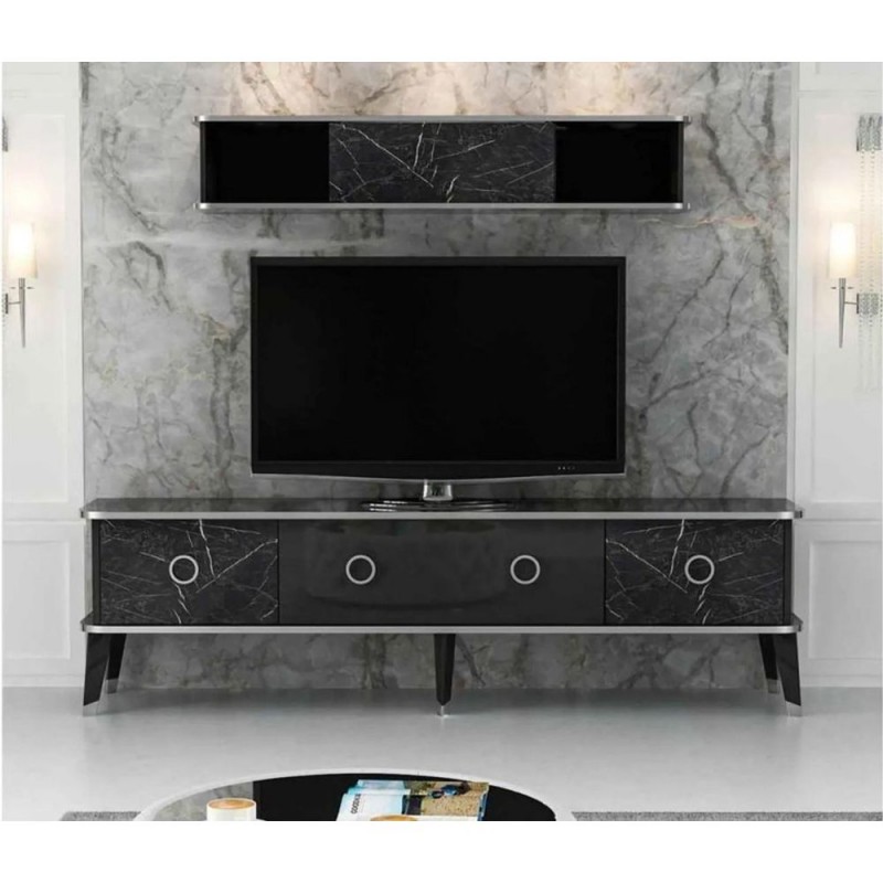 Porta tv con pensile Bientv 180 effetto marmo nero particolari argento