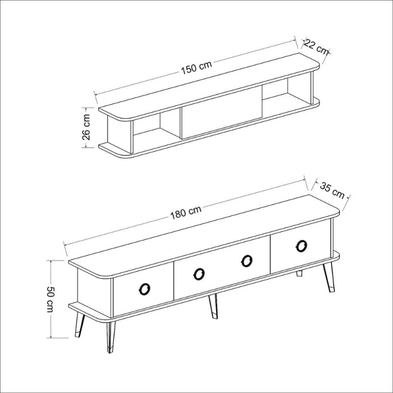 Misure porta tv 180x35x50 h cm. (vedi dettagli in foto).
