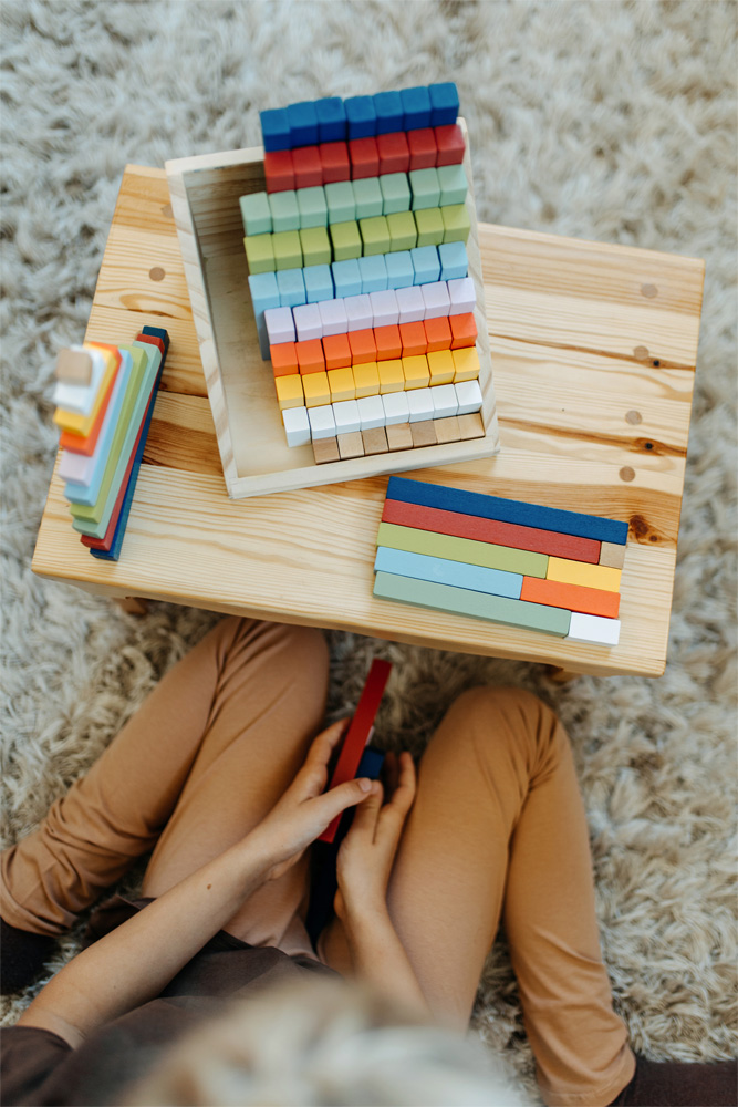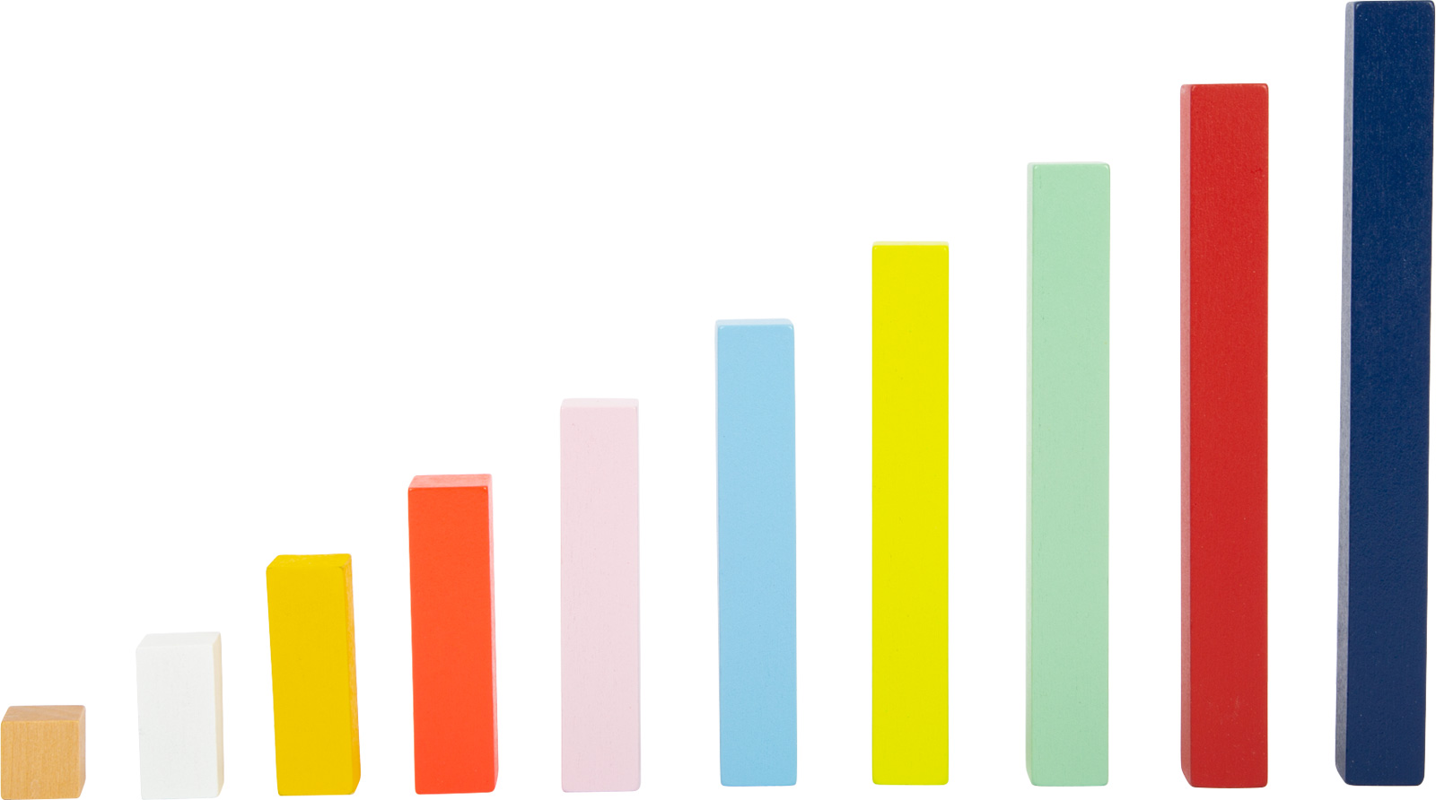 Ecco come è divertente la matematica! Questi versatili bastoncini per diapositive in legno massello vengono utilizzati per trasmettere visivamente quantità e proporzioni e dare ai bambini una prima comprensione dei numeri in modo rapido e chiaro. Le diverse lunghezze dei bastoncini servono da guida. Mentre i bambini più piccoli possono anche usare i bastoncini di legno per costruire e impilare, aiutano i bambini delle scuole e dell’asilo con le loro prime operazioni aritmetiche. Particolarmente pratico: il grande box in legno per lo smistamento e la conservazione! I bastoncini per diapositive allenano l’immaginazione e il pensiero logico mentre danno una comprensione di dimensioni e colori. Quando si tratta di contare, confrontare e ordinare, oltre ad addizioni, sottrazioni, divisioni e moltiplicazioni, sono anche i compagni ideali per grandi e piccoli maestri di aritmetica!