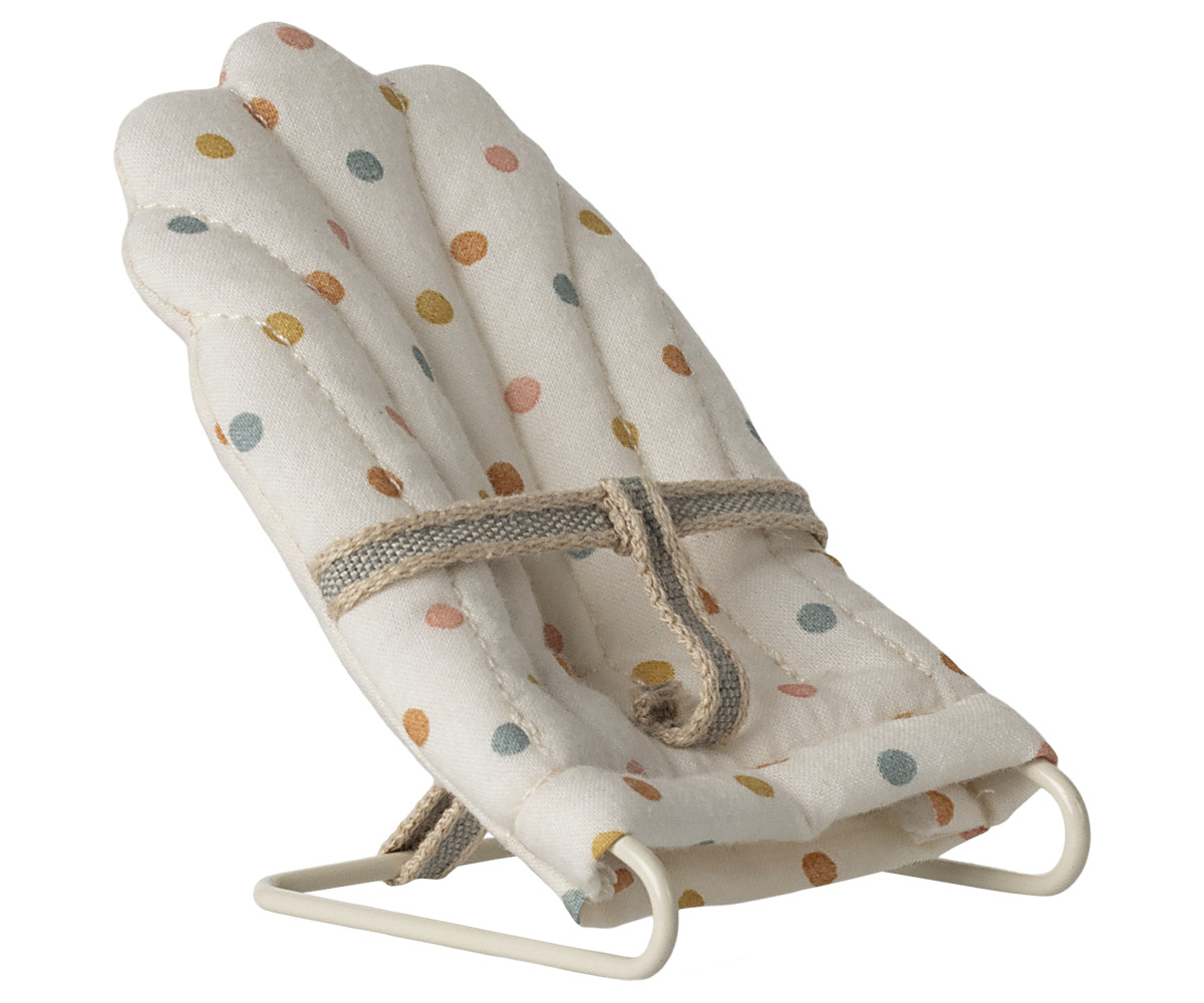 Questa sdraietta di Maileg è facile far addormentare i tuoi piccoli amici. La base è realizzata in metallo e rivestita con il tessuto più bello. La sedia si adatta perfettamente ai topi e ai conigli di taglia piccola.