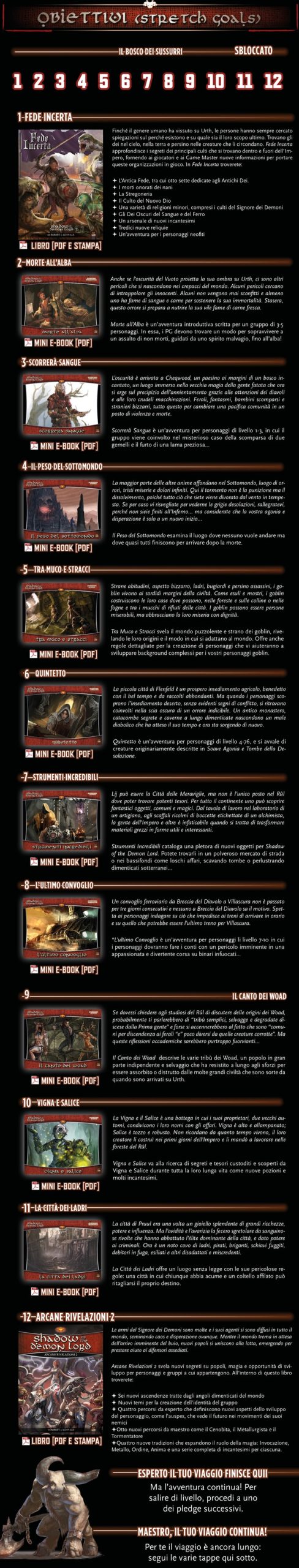 FINO AL 10 OTTOBRE, PUOI PARTECIPARE ALLA RICCHISSIMA CAMPAGNA KICKSTARTER! SPECIALE! NEL PLEDGE ESPERTO è INCLUSO: FILOSOFIA OCCULTA LA FRUSTA DELLO SCHIAVISTA SOPRAVVIVONO I MIGLIORI I DISCEPOLI DEL DEMONE IL REGNO DELLE VELE LA NUTRICE DEL DEMONE IL POTERE DEL NOME IL FLAUTO DELL’ADDIO MISERABILI E IMPURI LE MAREE DI KARSHOON CUORE D’INVERNO FEDE INCERTA MORTE ALL’ALBA SCORRERà SANGUE IL PESO DEL SOTTOMONDO TRA MUCO E STRACCI QUINTETTO STRUMENTI INCREDIBILI L’ULTIMO CONVOGLIO IL CANTO DEI WOAD VIGNA E SALICE LA CITTà DEI LADRI ARCANE RIVELAZIONI 2