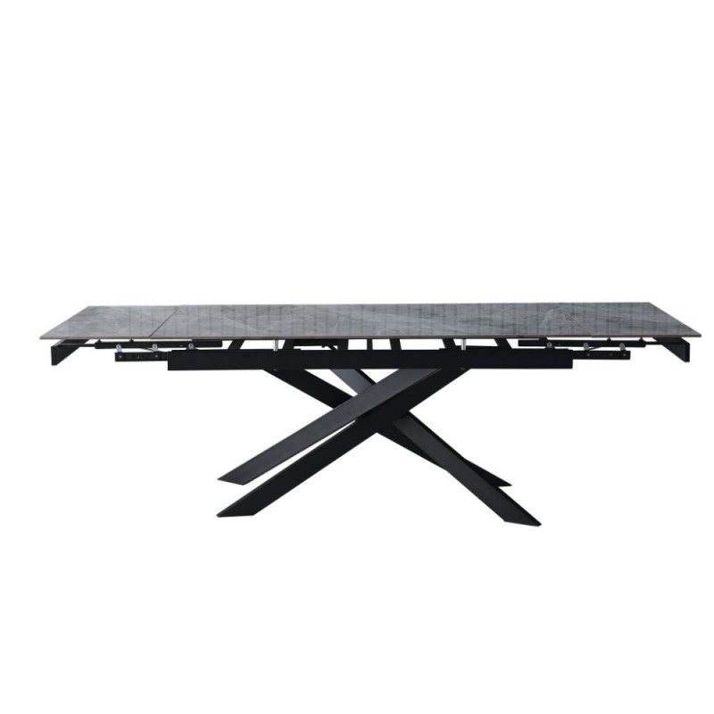 Tavolo allungabile Plato in ceramica colore grigio marmoreo italiano effetto lucido e gambe metallo nere