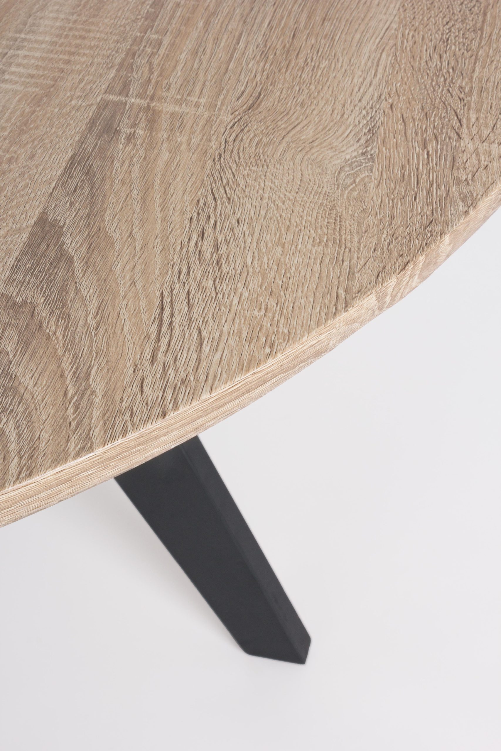 DETTAGLI Gambe in acciaio verniciato a polvere. piano in mdf rivestito in carta melaminica effetto legno. gambe da assemblare. MISURE Ø134 – 76h MATERIALI: Legno