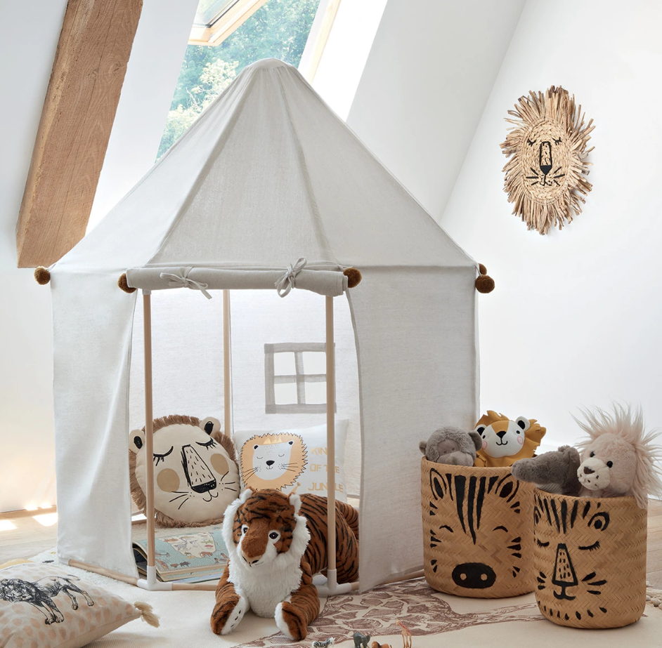 TENDA – YURTA ECRU’ Ancora più originale della tenda da interno, la yurta per bambini aggiunge una nota esotica alla cameretta dei bambini. Una yurta robusta e accogliente Questa yurta ha una struttura in legno di pioppo robusta e facile da montare che garantisce un’area di gioco perfettamente sicura. Il tessuto spesso viene semplicemente legato intorno alle barre, rendendolo facile da rimuovere per la pulizia della macchina. Una comoda area giochi La yurta ha 3 finestre e una porta. Puoi aprire e chiudere quest’ultimo arrotolando un pezzo di tessuto. I pompon aggiungono un tocco di contrasto e morbidezza all’insieme. Non dimenticare di acquistare un tappeto…